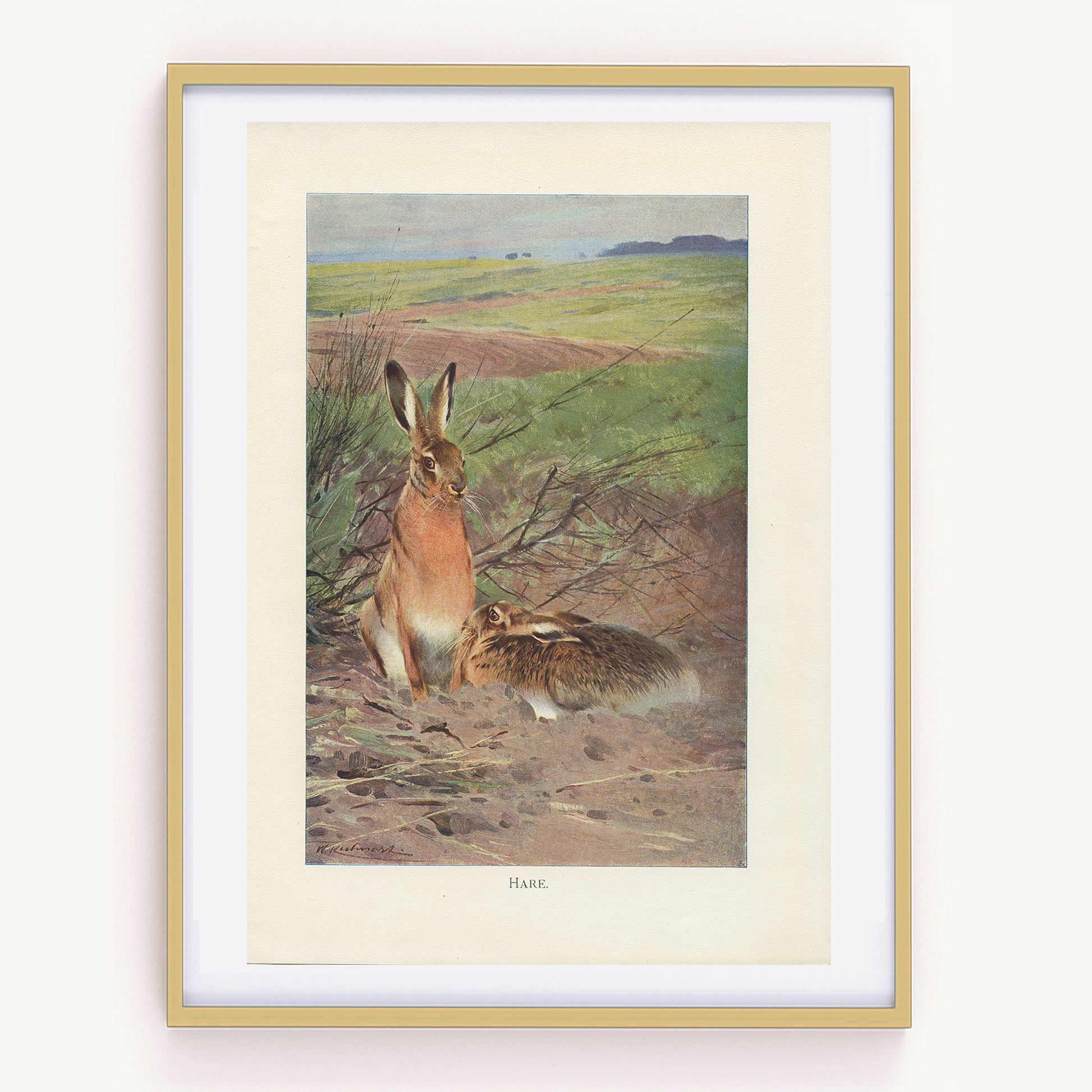 Lovely little antique Hare print from a 1916 natural history book entitled "Wildlife of the world" written by Richard Lydekker and illustrated by A. Weczerzick and W. Kuhnert (the author of this particular illustration).