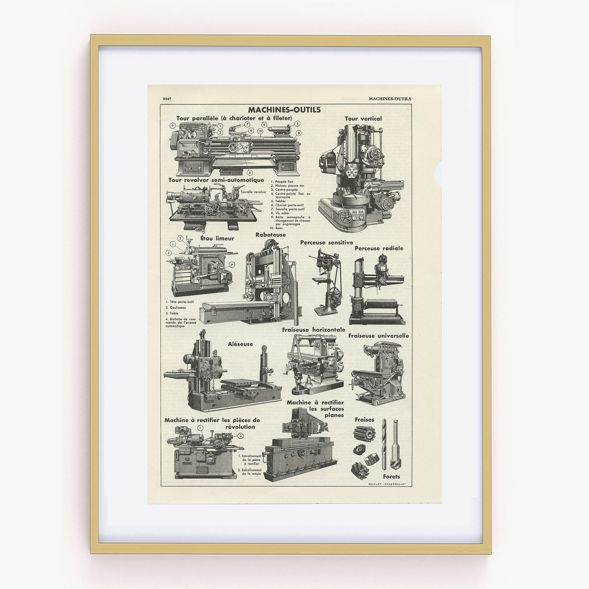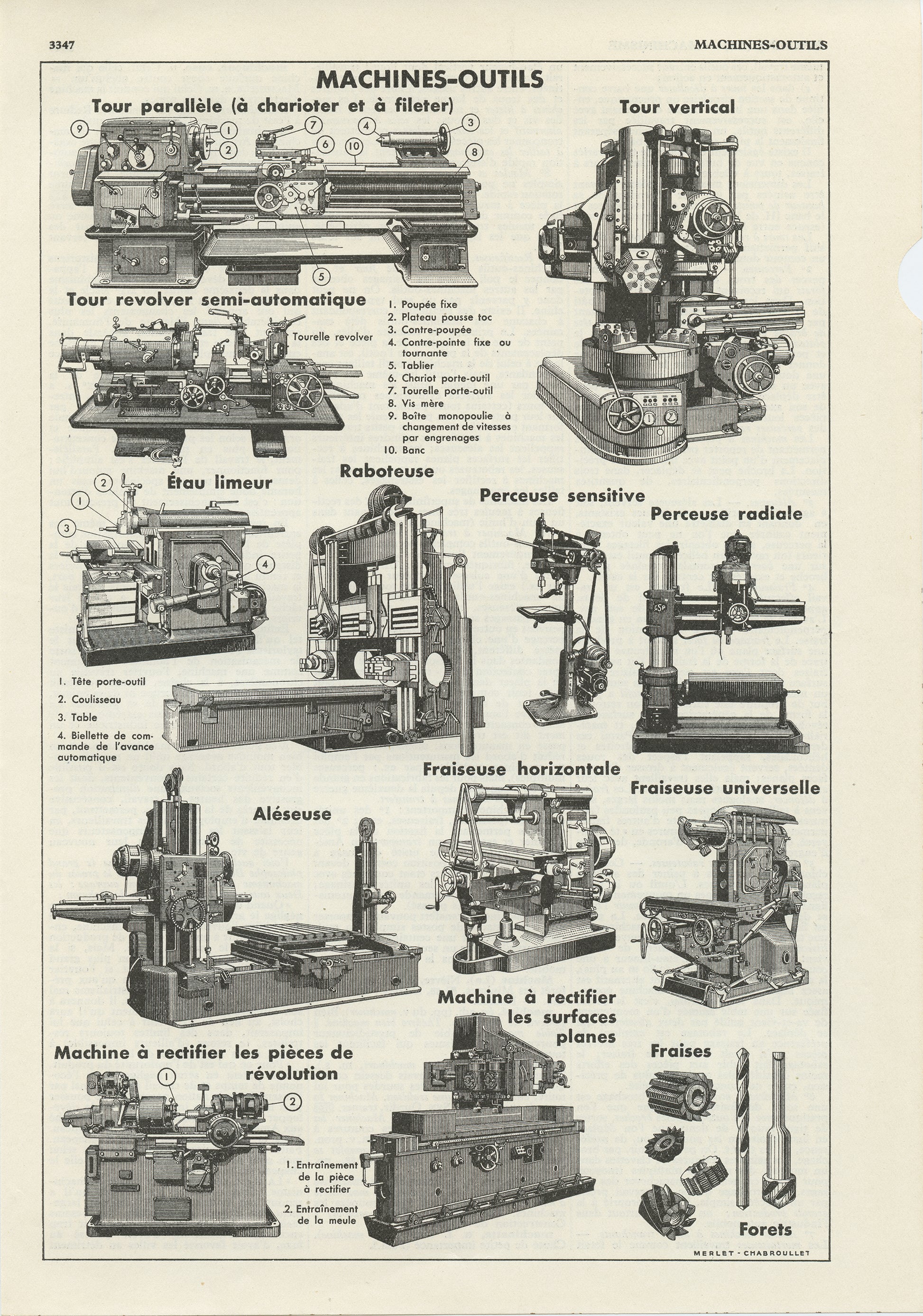 Page de dictionnaire qui illustrait l'article "Machines Outils" du dictionnaire Quillet de 1938.