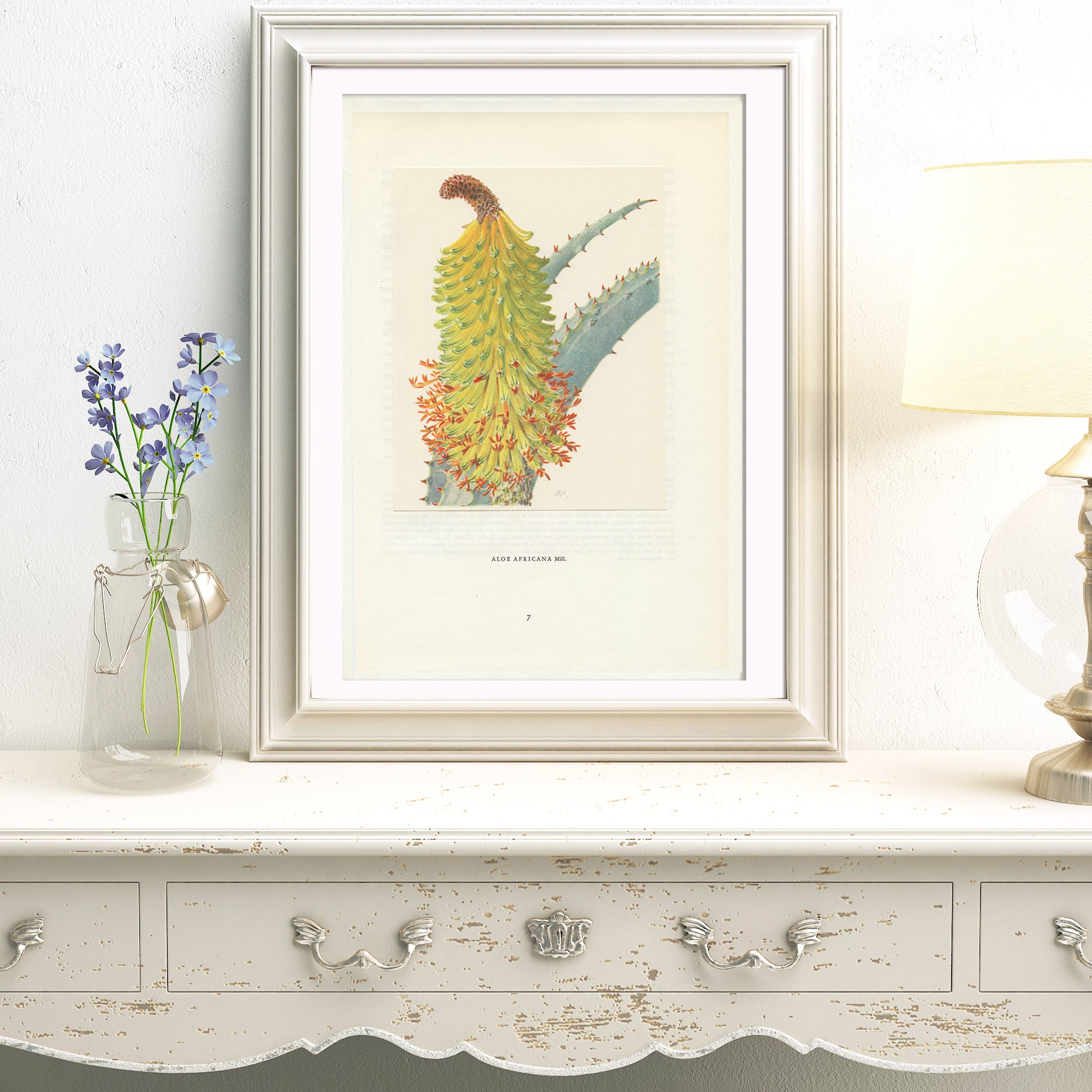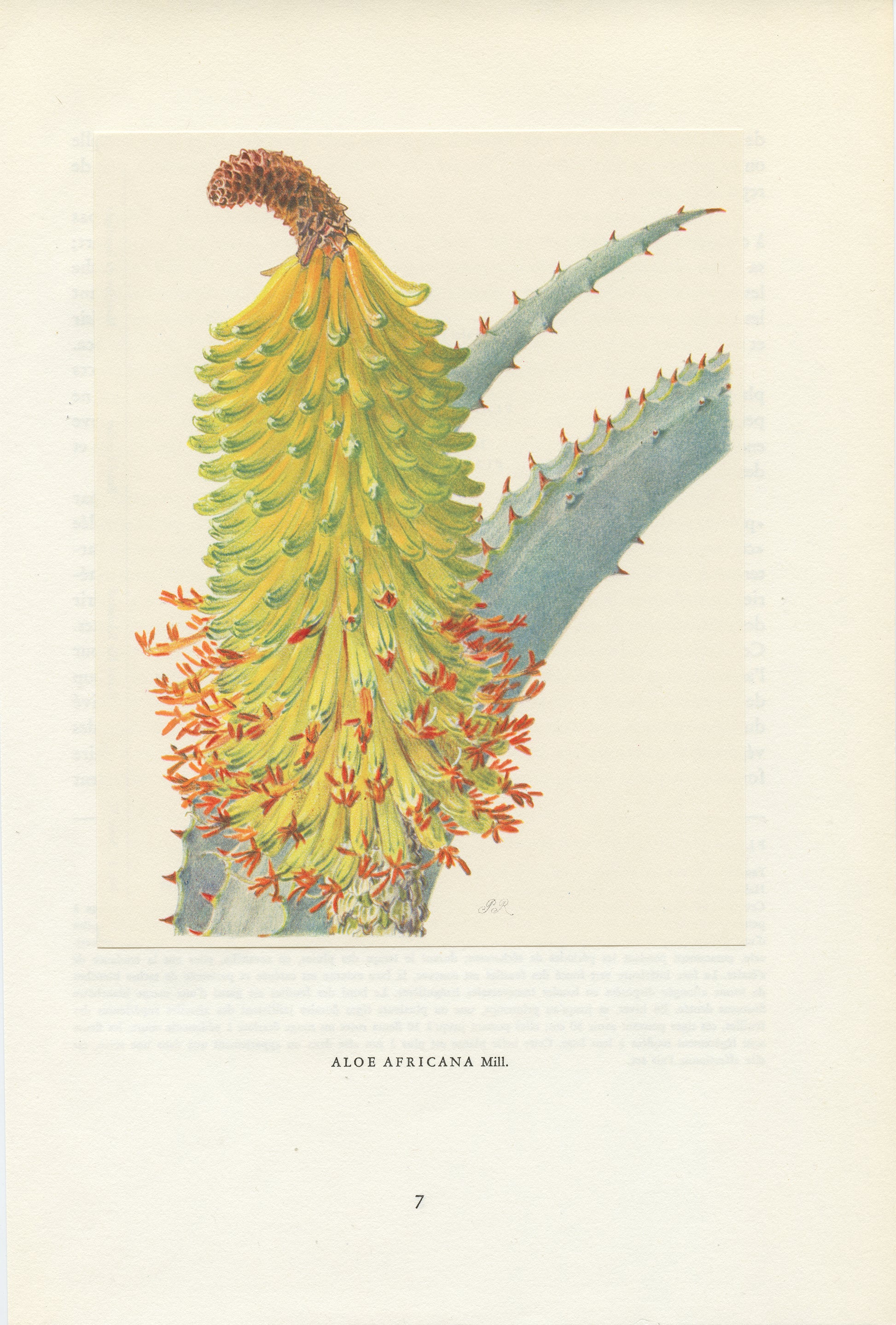 ● Illustration de plante grasse vintage représentant un superbe specimen d'Aloe Africana ou Uitenhage.