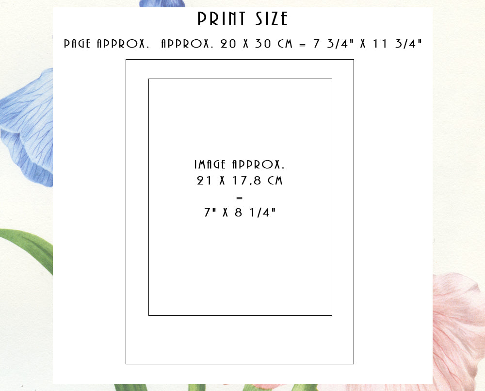page approx. 29 x 19,7 cm (7 3/4" x 11 1/4"), margins included. Image approx. 17.6 x 21 cm (7" x 8 1/4" ).