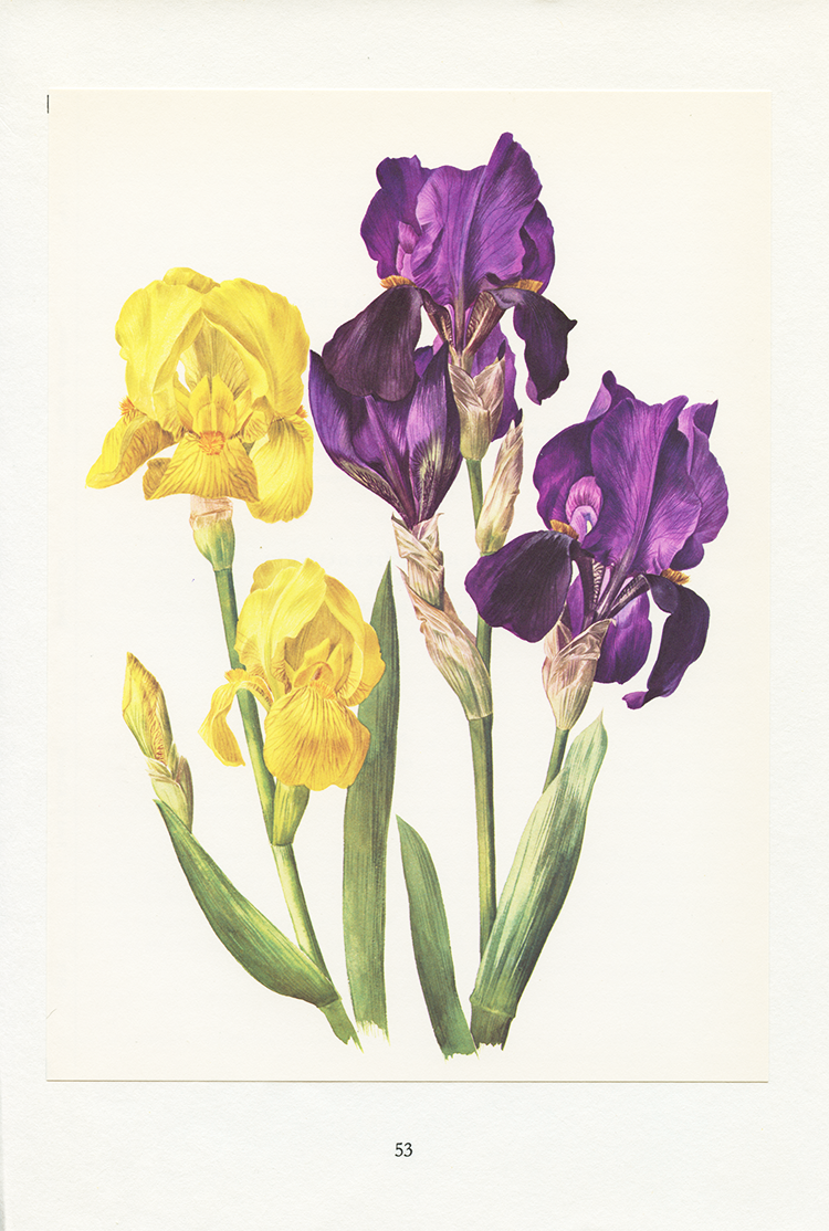 1964 Illustration d'Iris violet et jaune