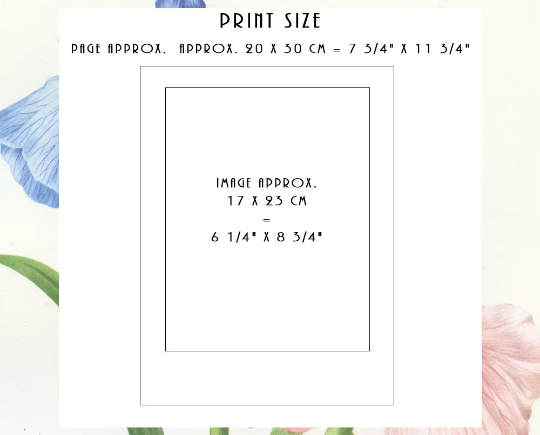 Image approx. 17 x 23 cm (6 1/4" x 8 3/4"), page approx. 29 x 19,7 cm (7 3/4" x 11 1/2"), margins included.