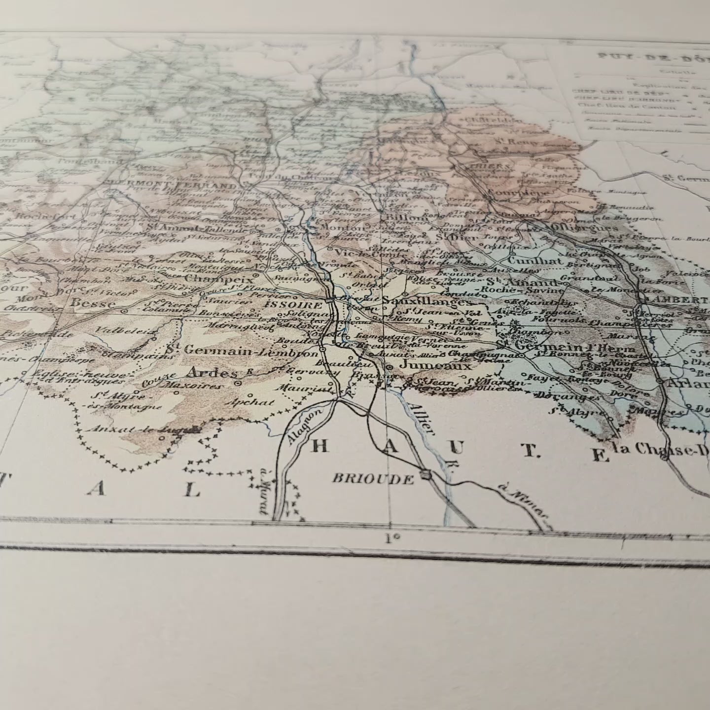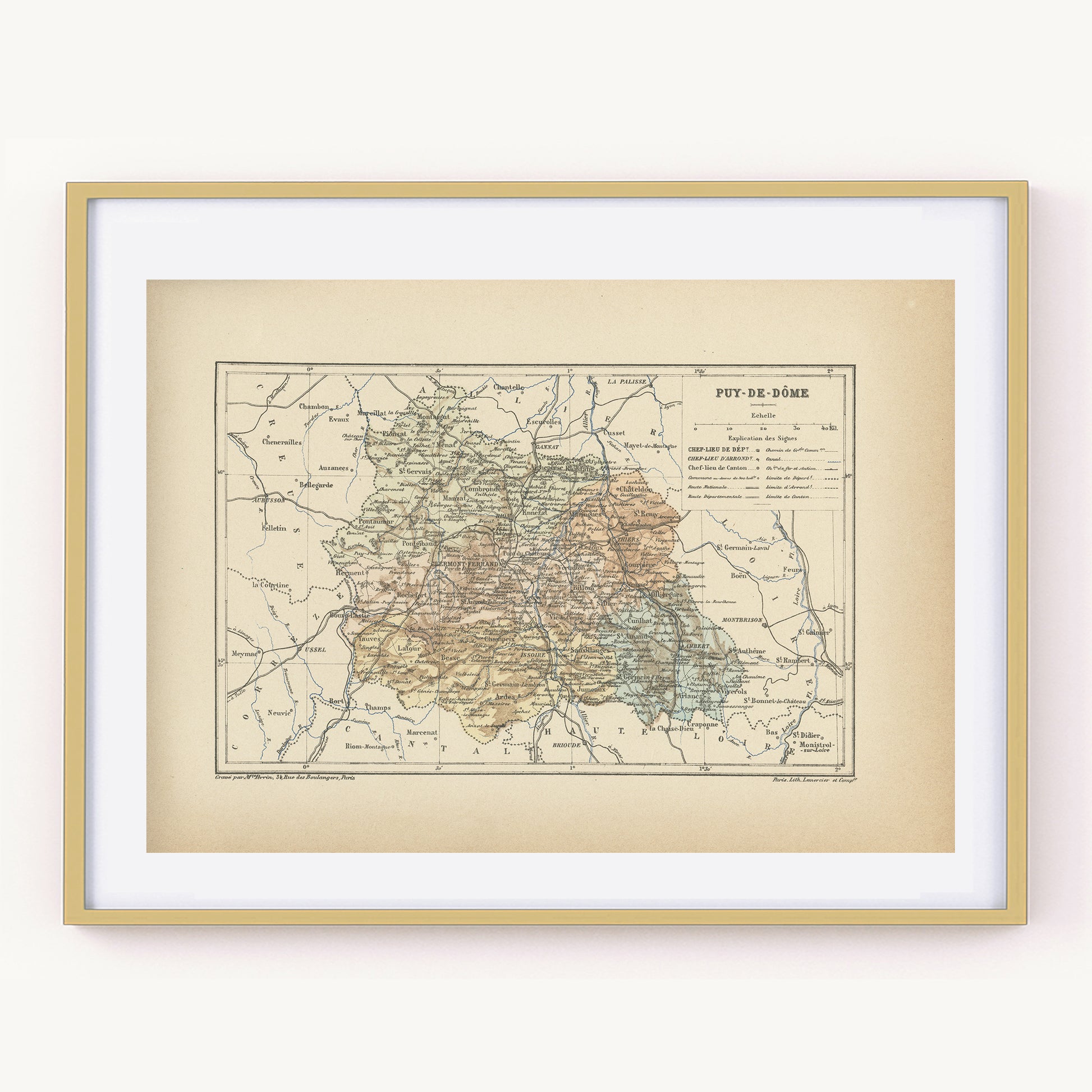 Il s'agit d'une page de dictionnaire de 1892, extraite d'un volume du dictionnaire encyclopédique de Jules Trousset, qui illustrait l'article sur le département du Puy-de-Dôme. La capitale en est la belle ville de Clermont Ferrand.