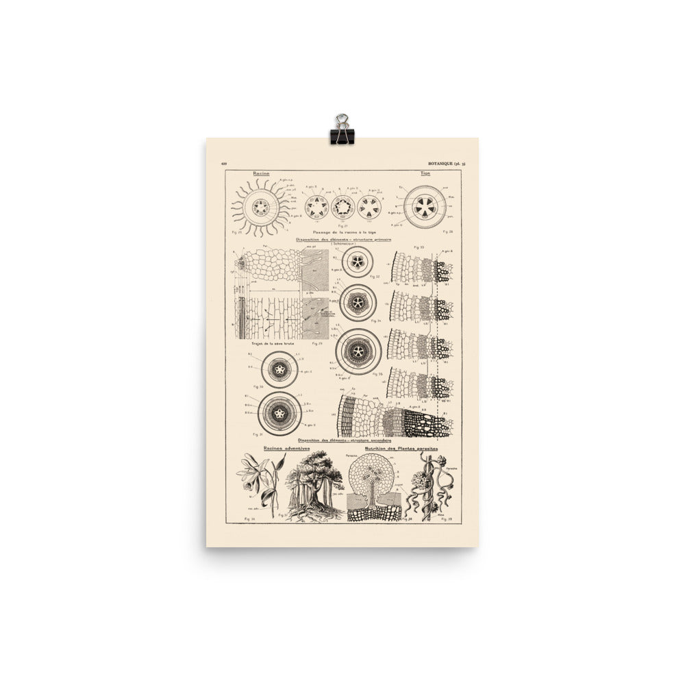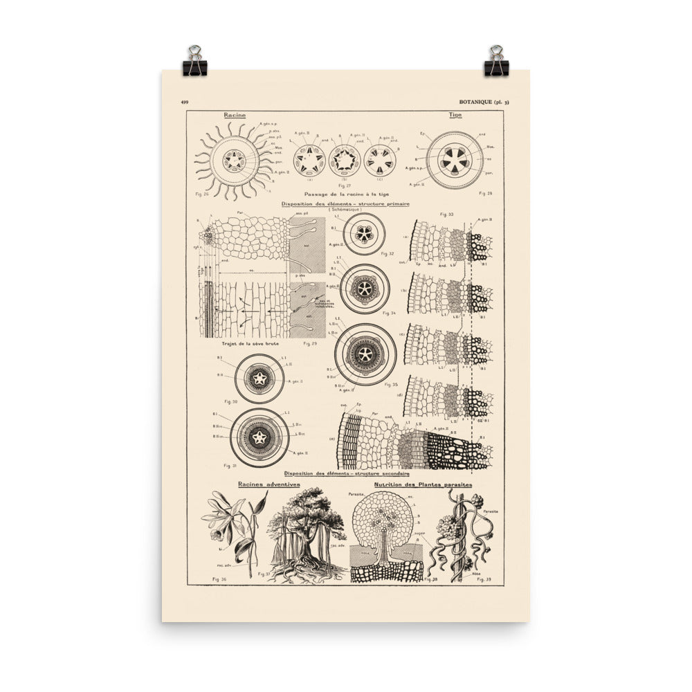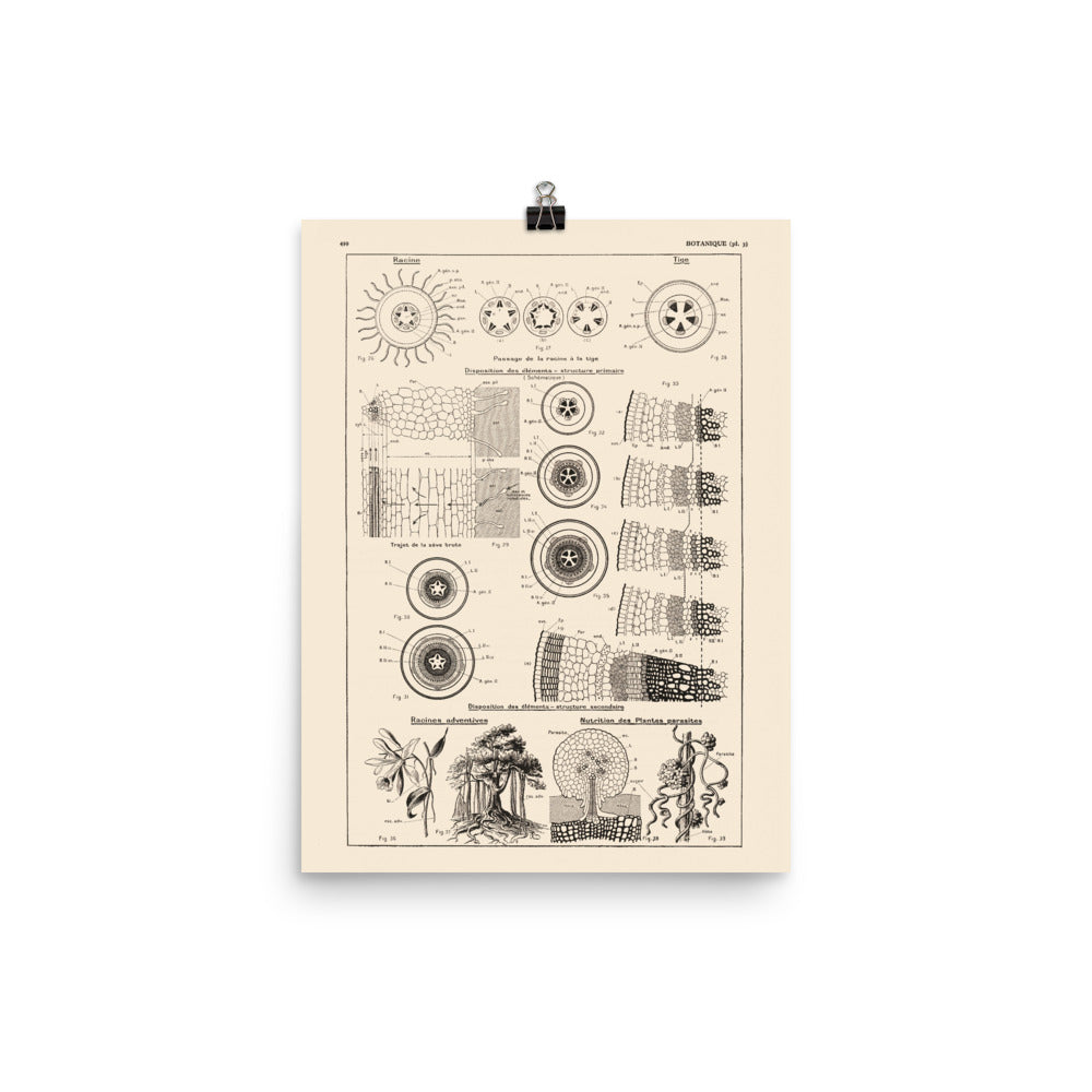 Affiche botanique - Structure des tiges et racines