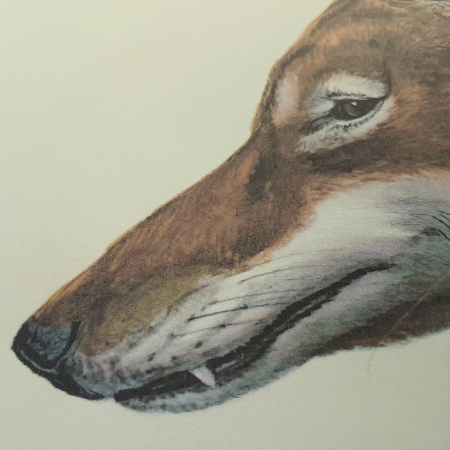 Museum-quality reprint of a 1926 wolf painting by Louis Agassiz Fuertes, an American wildlife illustrator. The painting first appeared in a book entitled "Album of Abyssinian birds and mammals", published in 1930.
