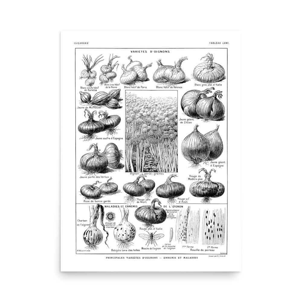 C'est une affiche très décorative, l'oignon ayant une forme parfaite en plus de sa saveur. Imaginez-le frit, en soupe ou en salade... vous en salivez déjà !