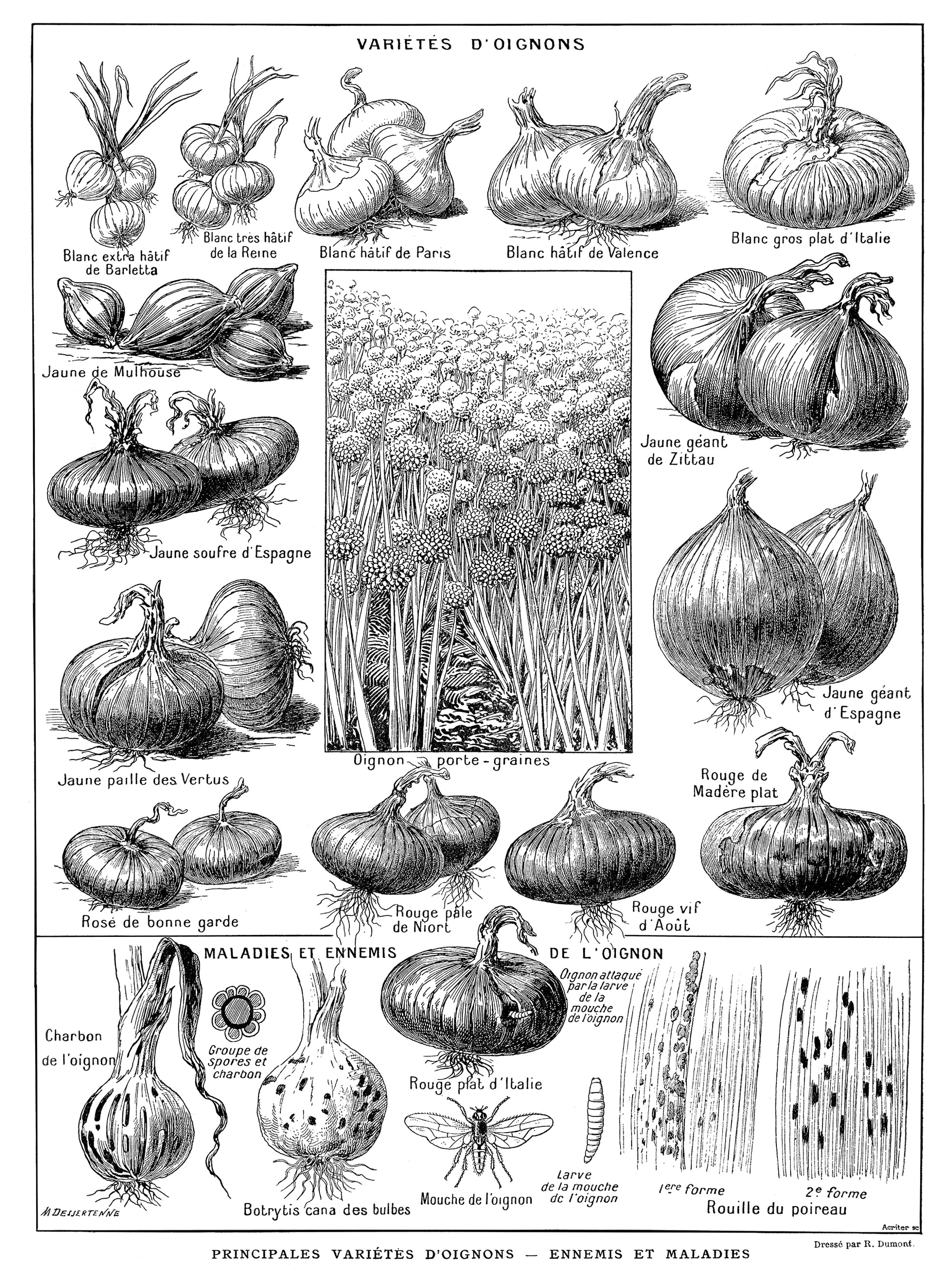 Elle détaille une sélection de variétés anciennes d'oignons, ainsi que les maladies et ennemis de l'oignon, comme la mouche de l'oignon ou le botrytis.