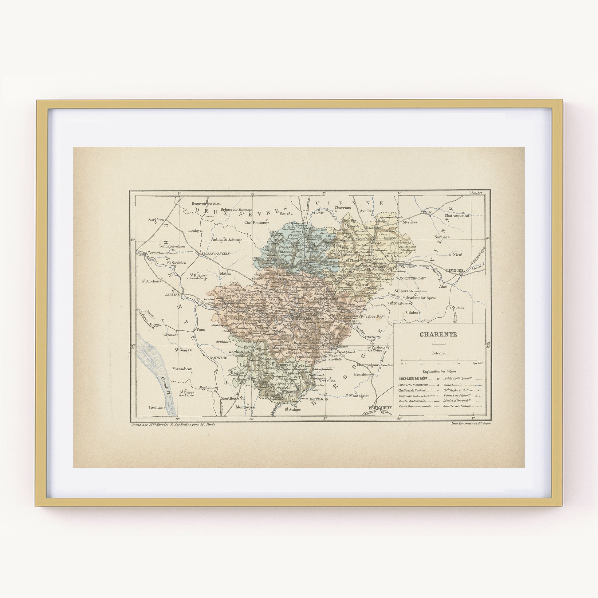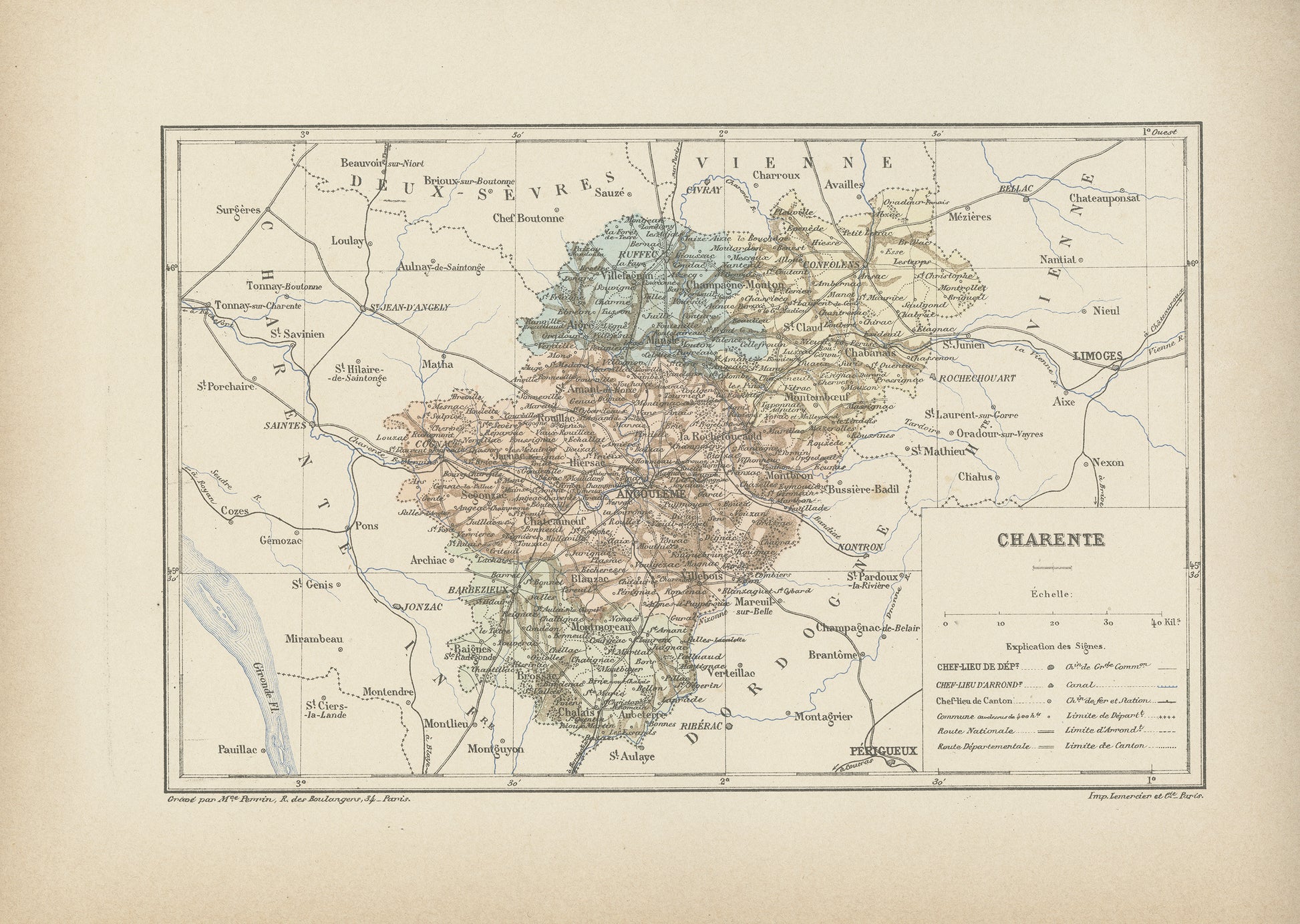 1892 Antique Charente Map