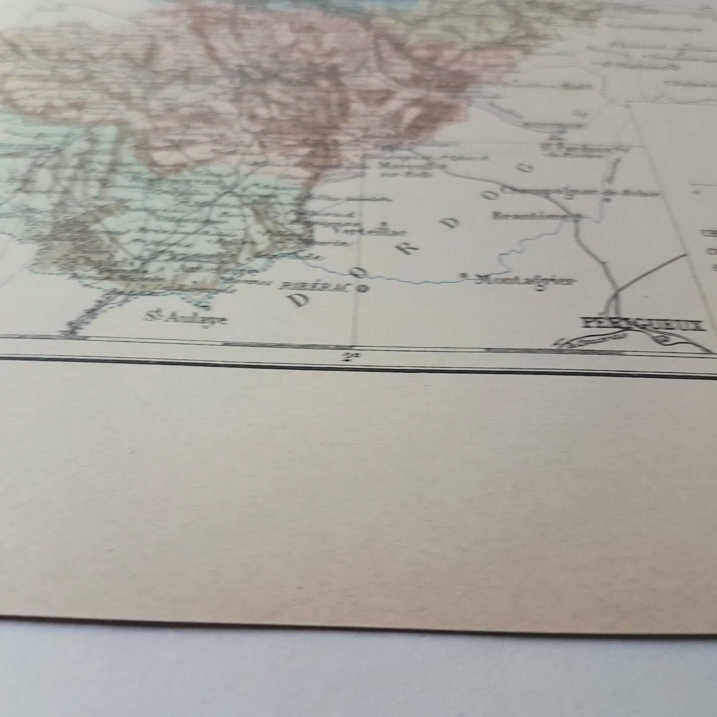 Gorgeous little engraving showing a delicately colorized map of a French department: the Charente department. Do you know where it is situated? As you may know, France is divided in 101 department. This one is in the West of France, almost on the coast. The capital city is Angoulême. The town of Cognac is also in Charente.