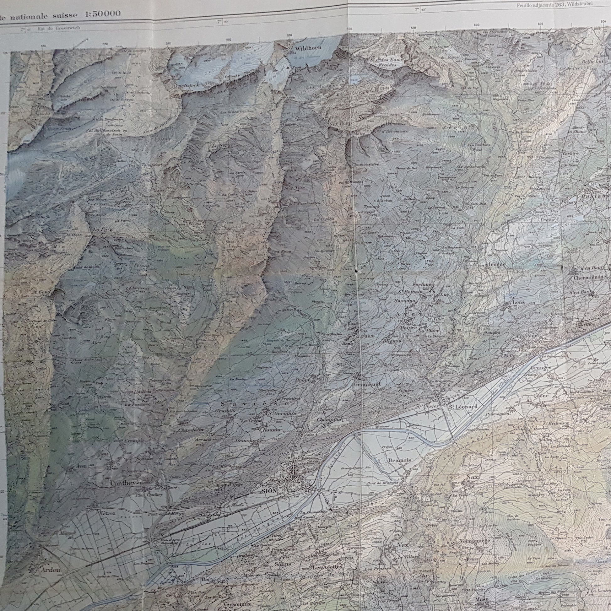 Here is a lovely 1946 Swiss Alps map, depicting the Montana area in Valais, showing some of the most iconic valleys and mountains in Switzerland : the Wildhorn in the top left corner and the Val d'Anniviers in the bottom right corner.