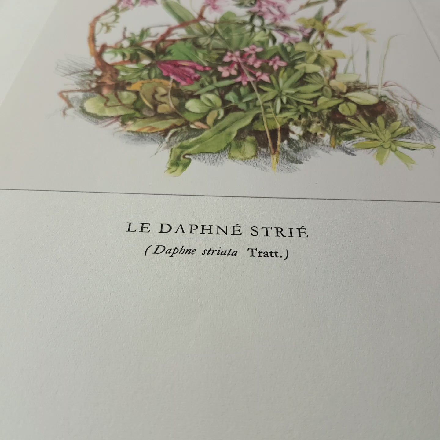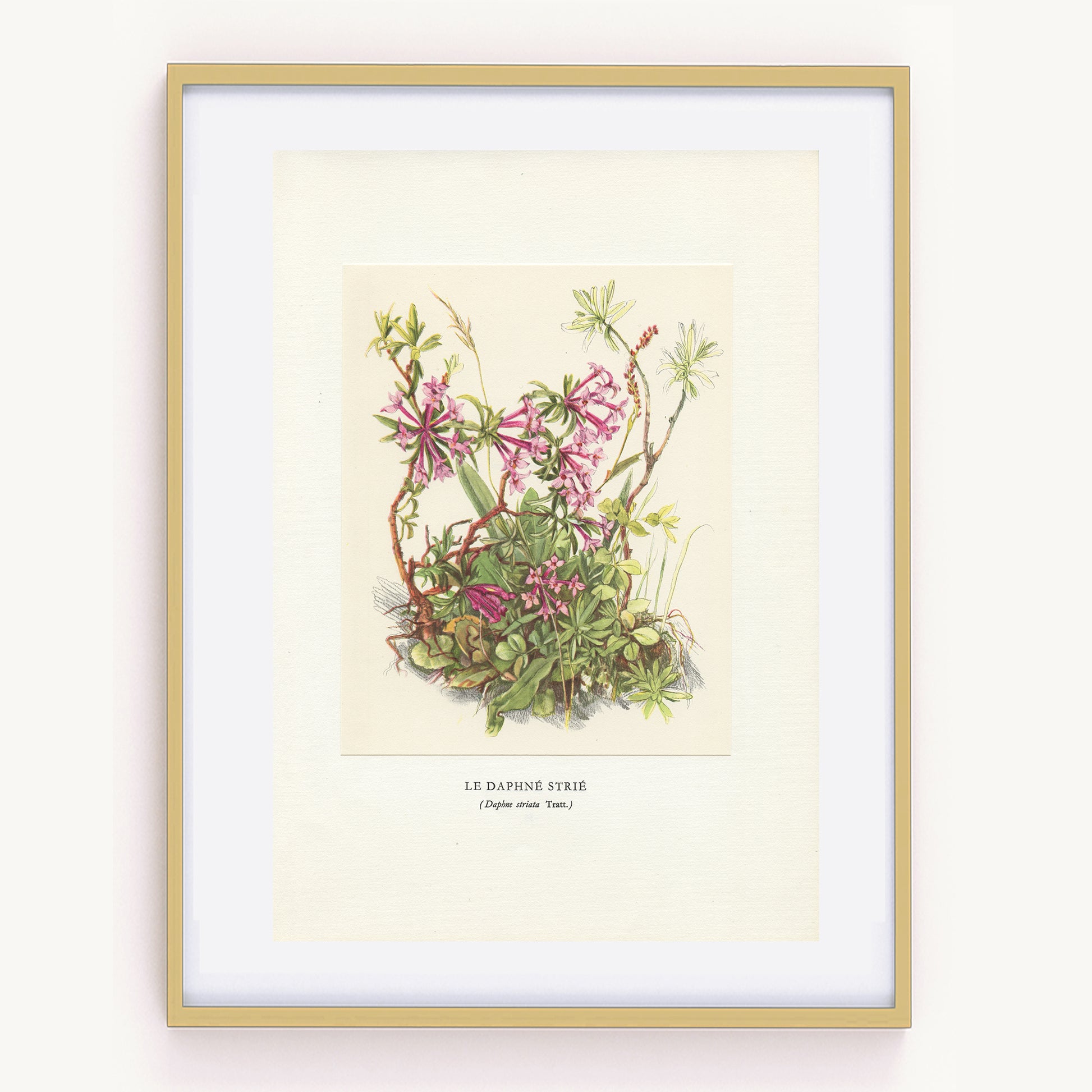 This lovely pink flower botanical poster comes from an out-of-print Swiss book from 1959 in French called "Les fleurs de nos montagnes", which translates to "Flowers from our mountains", illustrated by O. and M. Baumberger.