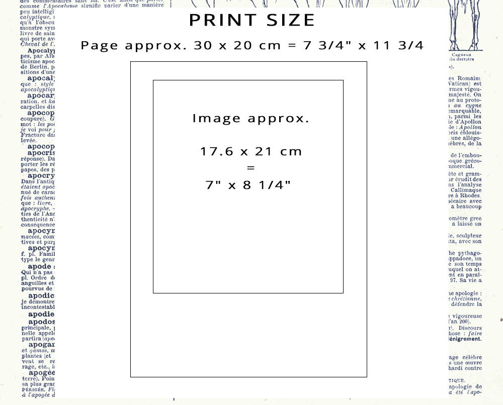 ● 𝗦𝗜𝗭𝗘 : page is approx. 30 x 19,7 cm (7 3/4" x 11 3/4"), margins included; image is approx. 17.6 x 21 cm (7" x 8 1/4" ).