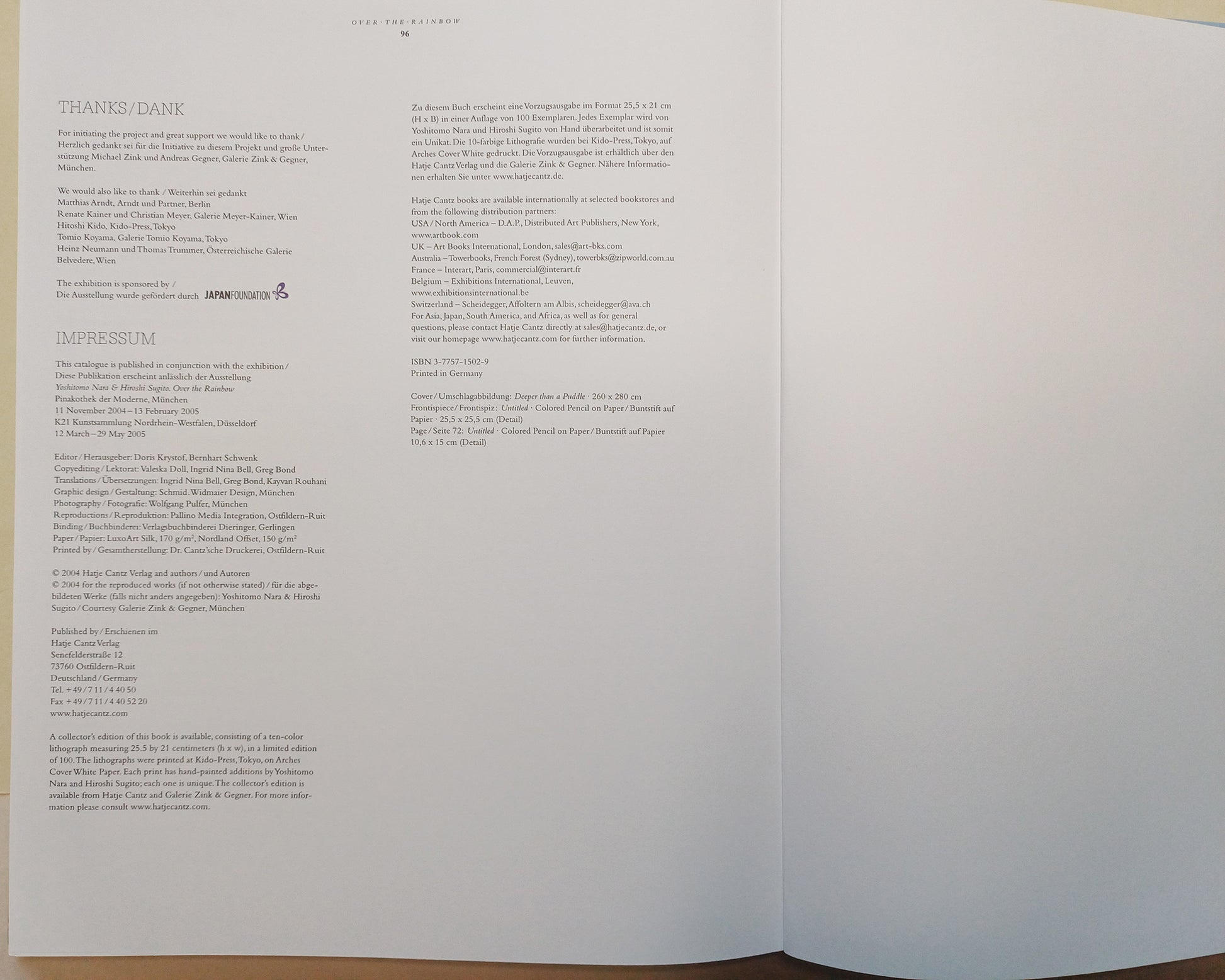 Livre d'illustration de 2004 "Over the rainbow" par Yoshitomo Nara et Hiroshi Sugito relié. Le livre est de seconde main mais en excellent état.