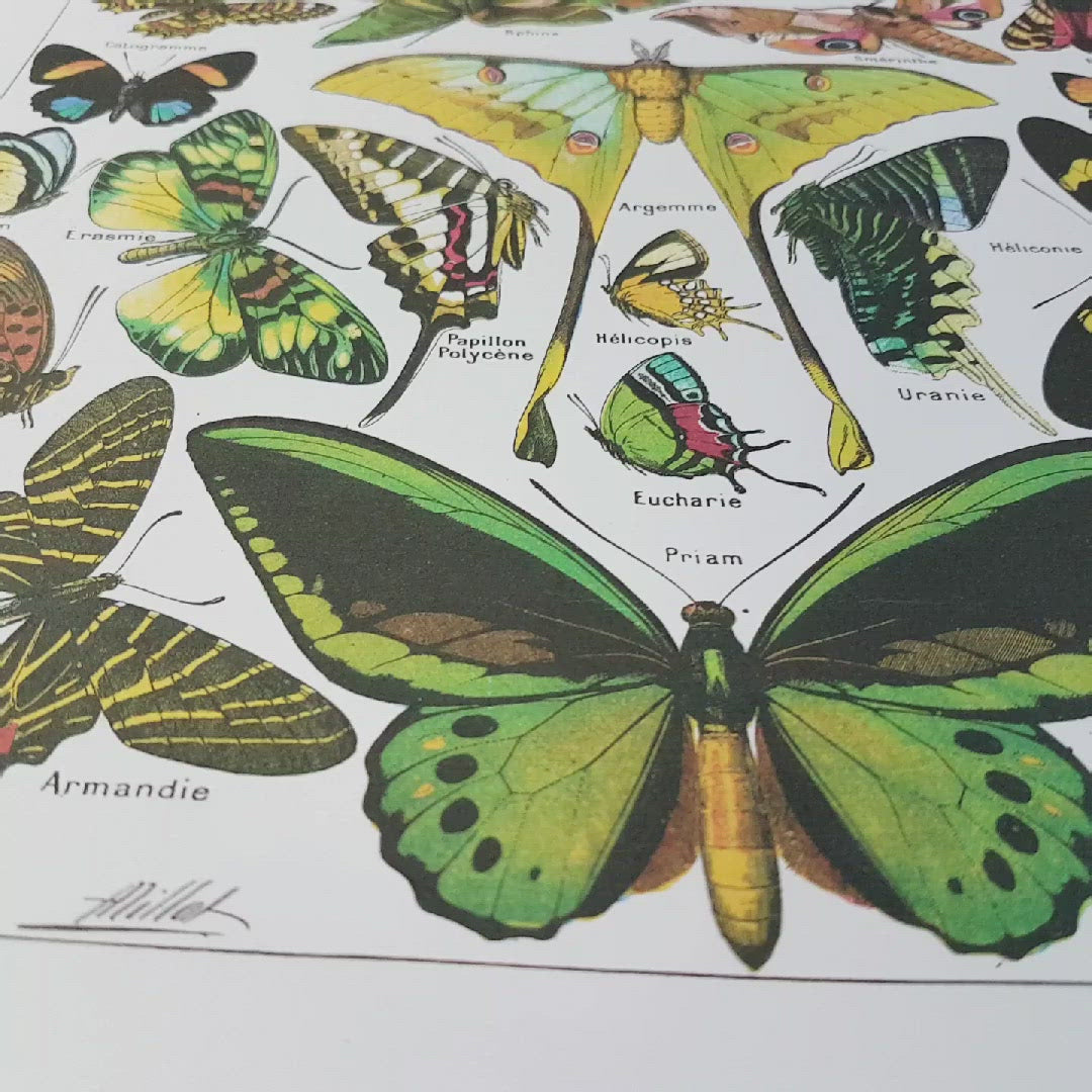 - Large format reprint of a lovely 1922 French vintage butterflies print, which illustrated the "Papillons" article of a French Larousse dictionary by Adolphe Millot.
