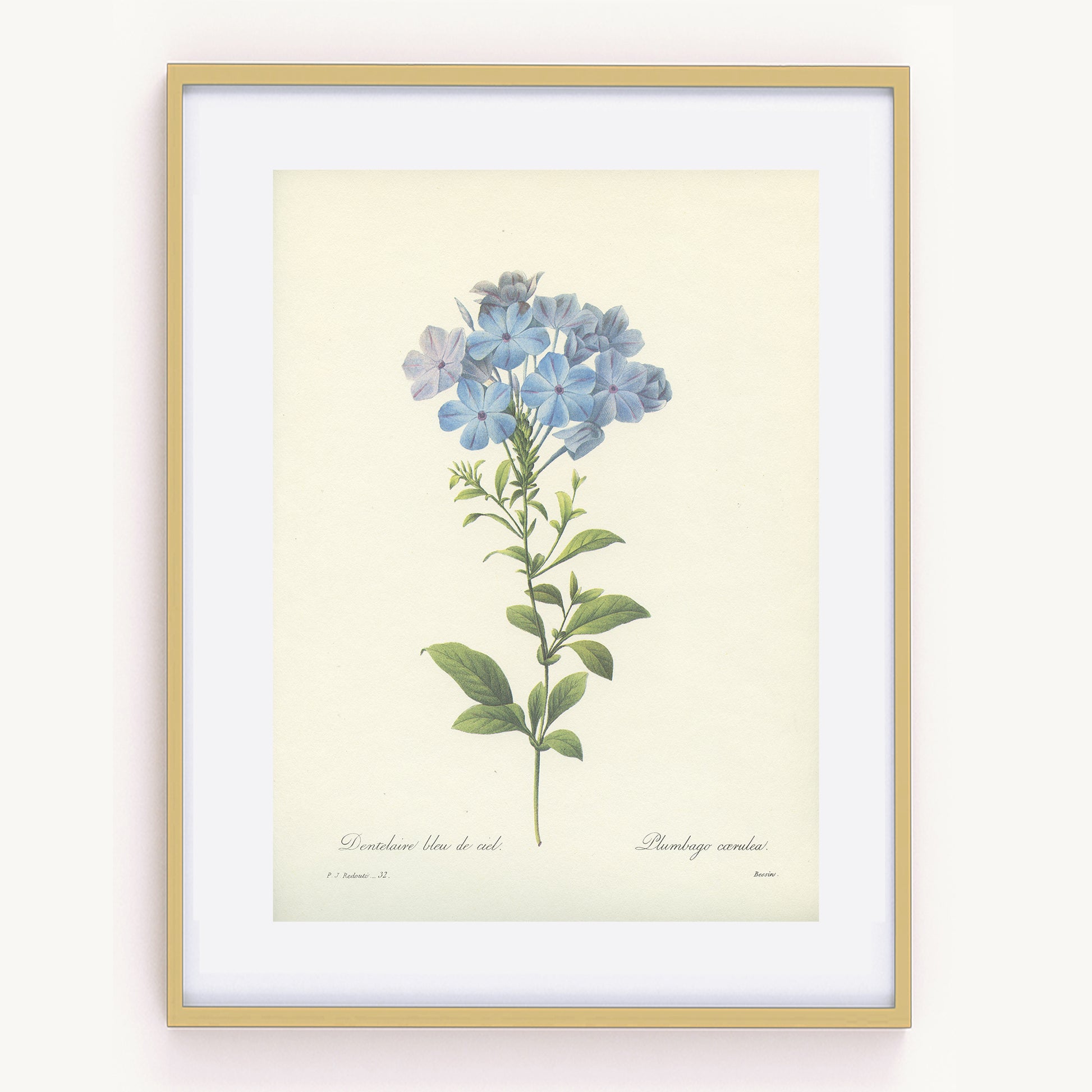 Vintage Redoute Blue Plumbago Botanical Print